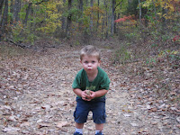 We took Noah up to the mountain this past weekend to spend a family day hiking. (And we wanted to break out the backpack!) It was a beautiful fall day with weather around 78 and all the colors of fall. Noah did a great job riding in the backpack for part of the way and then he hiked the rest with us. I was a bit nervous as to how he would do, but he kept up. He loved all the rocks, and often times he would get focused on picking them up and throwing them every which way. While riding in the backpack he would encourage daddy by saying "Careful Daddy, don't fall!" and "Noah's Hiking!!" On several occasions Noah fell while hiking on his own and he would say "Uh-oh, careful Noah" and then get up and wipe his hands. He was a trooper. All in all I would say that our hiking experience was a success and there will be more in the near future!